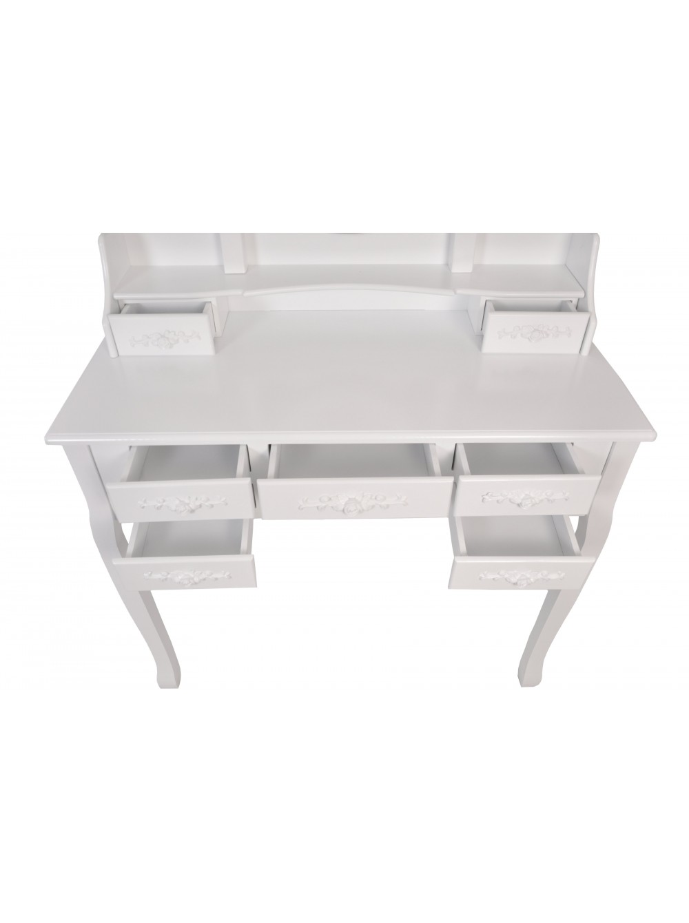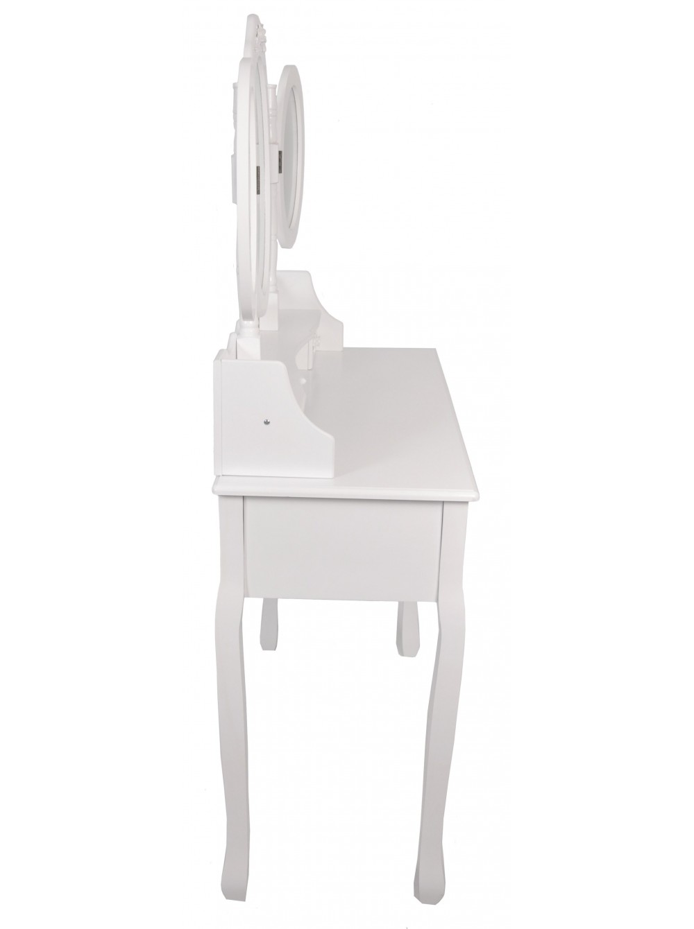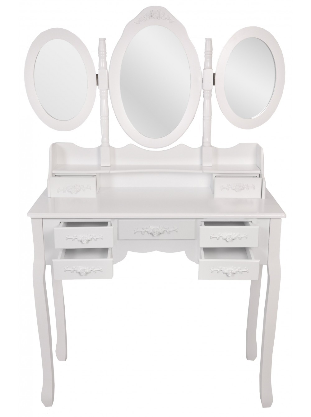 Цей елегантний і стильний туалетний столик Bonro-B020 з дзеркалом без сумніву знайде своє місце у вашому домі. Незалежно від того, чи використовується він як косметичний столик, туалетний столик або як проста одиниця зберігання, дизайн робить його практичним і декоративним предметом. Сім просторих ящиків надають додаткове місце для зберігання всіх ваших особистих речей. Овальне дзеркало, що повертається на 360 °, і два складних бічних дзеркала дозволяють легко наносити макіяж і в короткі терміни виконати кожну зачіску, красива тканина стільця відмінно доповнить романтичний стиль туалетного столика.
